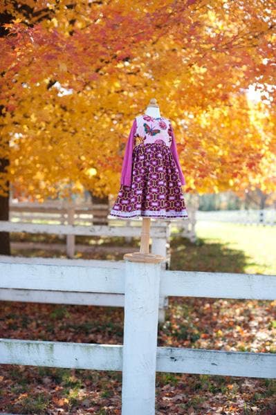 The dress bodice is fully lined with high quality coordinating fabric and has a button closure in the back of the bodice with coordinating buttons matching the dress. This dress has black and white piping in both armholes as well as around the neck. It's the PERFECT fall dress!! Professional finishing and linings. Everyone will be asking where your little one got this one-of-a-kind piece!